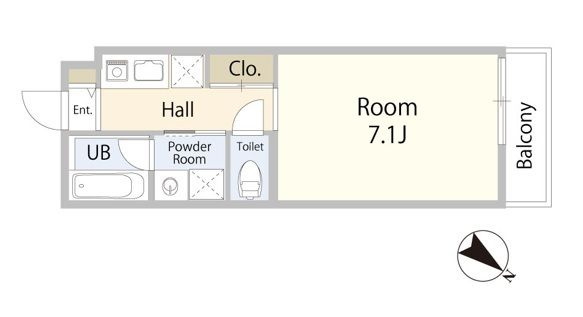 K 2.0帖 1室/洋室 7.1帖 1室 - 向き
